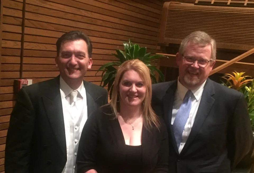 Dr. Marc Weagraff, pianist Michelle Massouh Makhlouf, and one very happy composer.